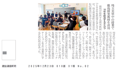 ・本校の取組が 2025年12月23日付「建設通信新聞」に掲載されました。
