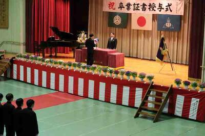 修了式を挙行しました。明日の卒業式では立派な姿を見せてくれることを期待します。