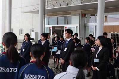 新転入職員歓迎会を行いました 投稿: 管理者1 (04/01) 4月1日、4名の新しい先生方を迎え、本日より令和8年度がスタートしました。 吹奏楽部の演奏による出迎えと、生徒会長による歓迎の言葉がありました。 新しい先生方と新たな美里中学校を作っていきましょう! Tweet -