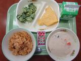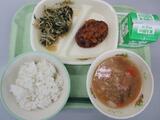 ごはん 牛乳 たまごスープ 鶏のからあげ ナムル