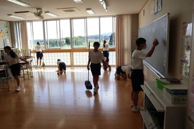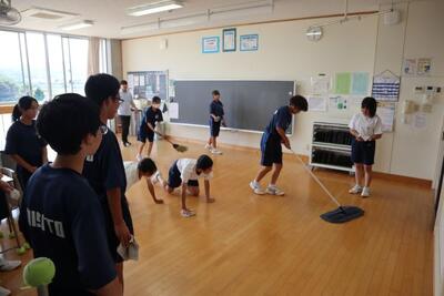 3年生が入学からずっと大切に続けてきた「心磨き 無言気付き清掃」を、美里中の伝統として1・2年生が受け継げるよう、3年生が1・2年生の清掃場所へ行き、一緒に掃除を行い、学校を今まで以上にきれいな環境にしていこうというものです。